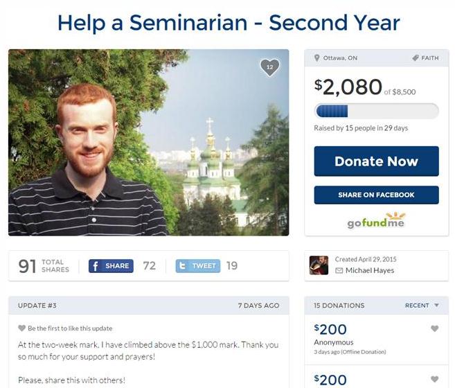 money to cover my costs for the next academic year. As a seminarian, I am not